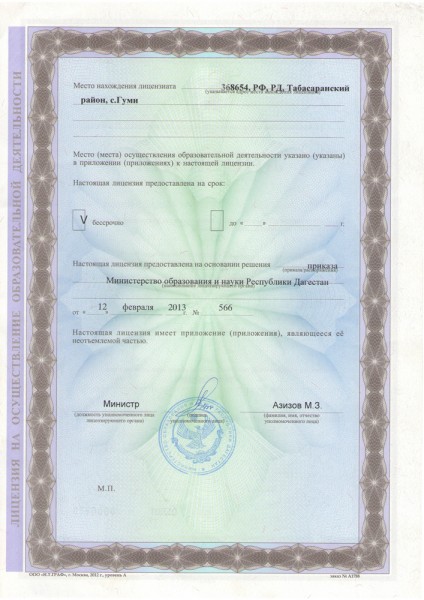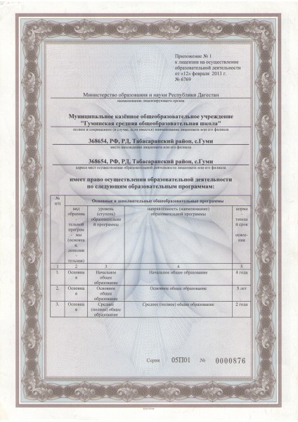 | Адрес местонахождения образовательной организации* | 368654, Дагестан Респ, Табасаранский район, с.Гуми, ул. Центральная, дом 5 |